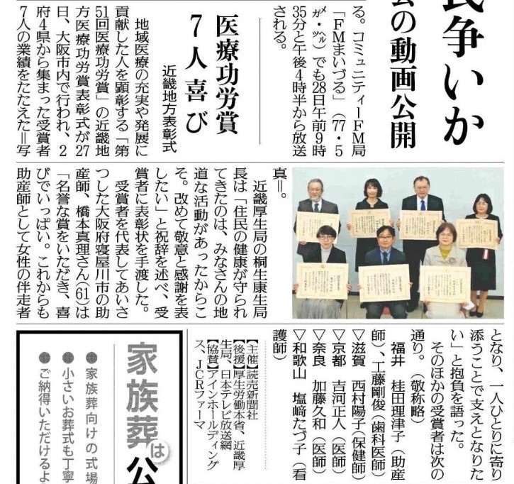「医療功労賞」近畿ブロック表彰式の記事です